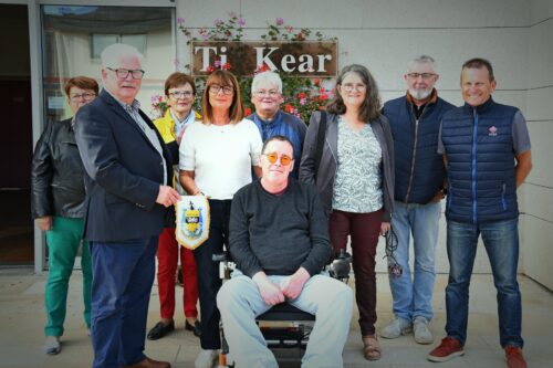 Bernard Gibergues et son Adjointe, Evelyne Page, entourés de quelques membres du CCAS, ont remis le fanion de la commune, à Jean-Luc Lannuzel qui s’apprêtait à troquer son fauteuil roulant pour une joëllette.