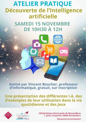 Atelier pratique « Découverte de l’intelligence artificielle » le 15 novembre à la médiathèque de 10 h 30 à 12 h 00.