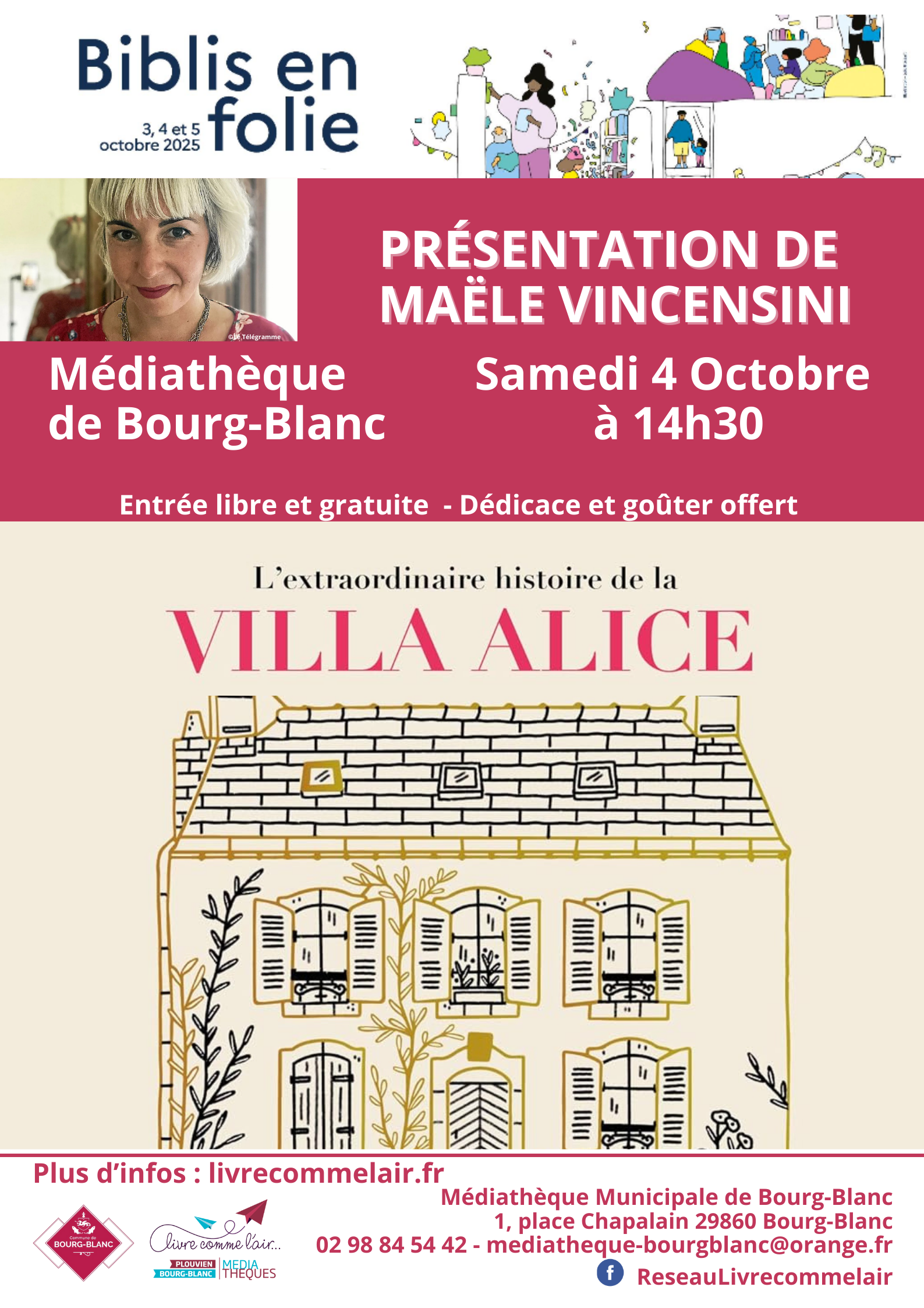 Plus d’infos et inscriptions : accueil, 02 98 84 54 42 et https://livrecommelair.fr
