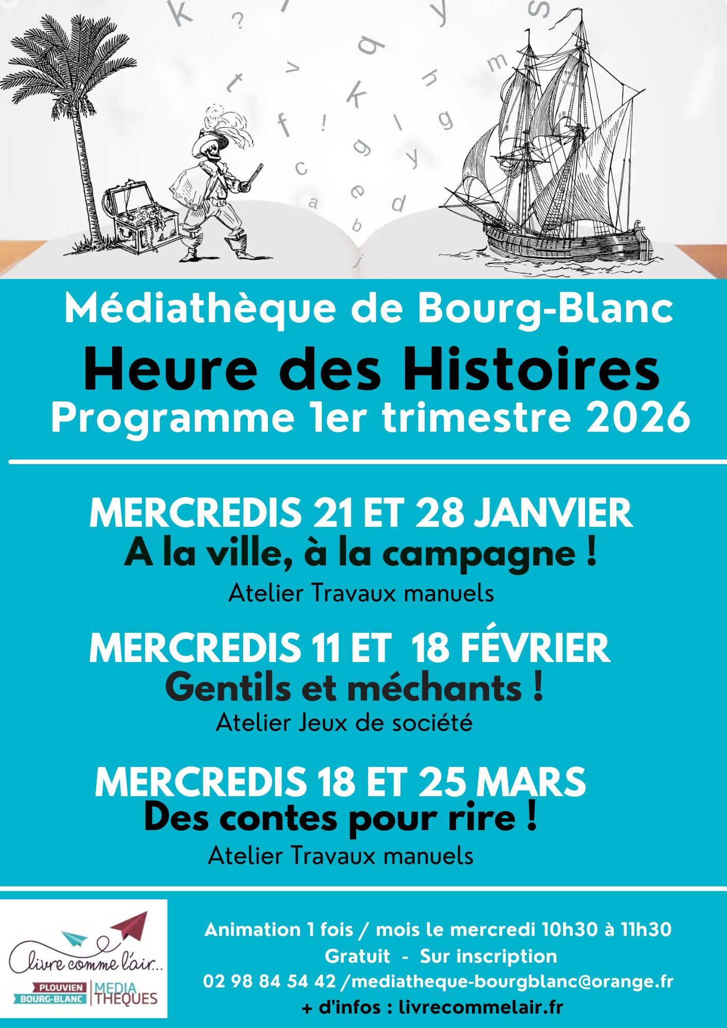 Retrouvez toutes les nouveautés de la médiathèque, les animations, les coups de coeur sur le site portail de Plouvien et Bourg-Blanc « Livre comme l’air »